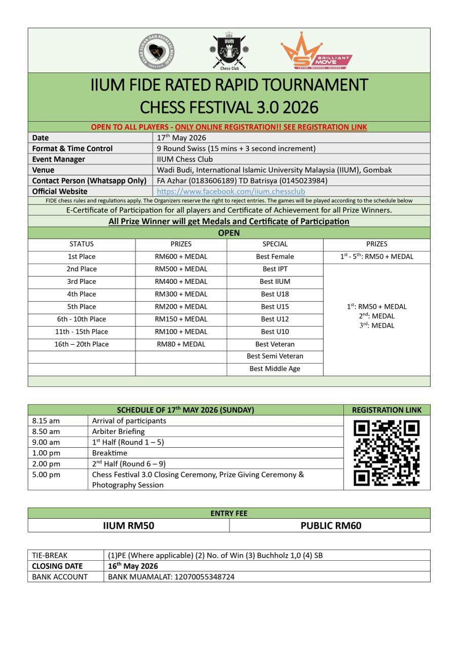 IIUM FIDE Rated Rapid Tournament Chess Festival 3.0 2026